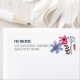Une faire-part de mariage chic et fraîche avec des fleurs blanches peintes à la main rose et violet sur un arrière - plan bleu marine agrémenté d'écriture or calligraphie moderne. Design original par Kitty Pie Prints.