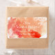 Abstrait moderne aquarelle splash coral reef étiquette mariage avec une peinture à l'aquarelle peinte à la main splash avec texture dans les tons de corail orange et pêche, corail récif en blanc et texte en blanc et gris. Cet élégant et élégant faire-part de mariage décontracté exotique est un modèle entièrement personnalisable parfait pour votre mariage d'été de destination de plage côtière.