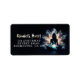 Studio de Fitness moderne Yoga / Méditation Instructeur / Personal Trainer / Life Coach / Guérisseur / Reiki Master / Massage Étiquette de adresse - Une femme est assise à Sukhasana, également connu sous le nom de Pose Facile, qui est une posture commune pour le yoga et la méditation. Elle est entourée d'une brume éthérée et tourbillonnante qui émet une lumière douce. La brume forme autour d'elle une forme abstraite, fleurie. La brume et la fleur symbolisent son énergie spirituelle et sa connexion à la nature. La fleur de lotus est un symbole sacré dans de nombreuses religions et cultures, représentant la pureté, l'illumination, la renaissance et la beauté. La fleur de lotus est également liée au yoga et à la méditation, car elle est souvent utilisée comme siège pour les divinités ou comme point focal pour la concentration. La fleur de lotus blanc à l'image signifie sa paix intérieure et son harmonie.