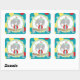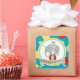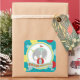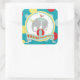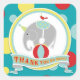 Un autocollant amusant à thème de cirque avec des pois brillants et un éléphant avec casquette d'anniversaire équilibrant sur une balle et un oiseau rouge avec casquette d'anniversaire.
