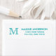 Étiquette Moderne classique élégant chic Turquoise Monogramm