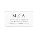 Élégante étiquette d'adresse de retour de mariage avec les initiales monographiques du couple séparées par une carte d'identité en script de calligraphie noir sur un arrière - plan blanc. Personnalisez les étiquettes d'adresse de retour du mariage monogramme avec votre adresse ci-dessous. Les étiquettes sont parfaits pour les mariages, les douches nuptiales et autres événements spéciaux.