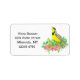 Étiquette d'adresse de retour décorée d'une larve de mer occidentale jaune vif perchée sur un buisson bitterroot fleurissant se mêlant à un plante de brosse verte douce dessinée à l'encre et peinte à l'aquarelle. Inspiré par l'oiseau d'Etat et la fleur d'Etat du Montana.