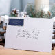 Un élégant label d'adresse de retour de Noël, avec un modèle de nom de famille, et un design élégant et minimaliste, avec un plaid bleu marine rustique, une typographie branchée et un nettoyage simple minimal, avec un hiver décontracté informel, et un style créatif unique, avec un motif rouge et vert, une ferme créative