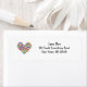 Cette étiquette d'adresse de retour comporte un coeur rempli de fleurs de néon.