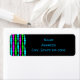 Ces étiquettes d'adresses de retour ont un design moderne du milieu du siècle de rectangles ronds rose, vert et bleu néon, de taille croissante et décroissante fonctionnant verticalement sur un champ de noir.