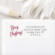 Ajoutez une touche de finition élégante aux enveloppes de cartes de vacances avec des étiquettes d'adresse de retour customisées modernes. Tout le texte sur ce modèle est simple à personnaliser avec n'importe quel libellé, comme Joyeux Noël, Joyeux Fêtes, Joyeuses Fêtes ou Bonne Année. Le design festif rouge, blanc et noir présente une calligraphie de script brossé moderne et une typographie sans-serif minimaliste classique. Ces étiquettes uniques apportent une élégante addition aux cartes de Noël et aux invitations de fêtes de fin d'année.