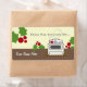 Étiquette illustrant un poêle rétro avec théière rouge assise sur le brûleur avant gauche. La cuisinière est assise sur un sol rouge et vert festif. L'Arrière - plan en bas est brun. Entouré de design. En haut, on peut lire "De la cuisine de..." Personnalisez avec votre nom en bas. Recherchez les articles correspondants tels que tablier, classeur de recettes, en-tête de recette et cartes de recettes dans la section "Pour votre cuisine" de la paperie de Jill.