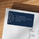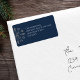 Ce design comprend une étiquette d'adresse de retour marine bleu argent de Noël avec un flocon de neige design classique élégant, un joli joli caprice de Noël simple, étiquette d'adresse de retour de Noël, enveloppe de vacances de Noël sceau, une famille personnalisée customisée, avec adresse de nom ville, simpliste d'élégance créative minimaliste, avec texte blanc en lettres simples, un style de bloc en lettres nom de famille