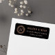 De belles étiquettes noires d'adresse de retour élégantes présentent votre monogramme initial unique encerclé par un modèle de mandala en or rose complexe. REMARQUE : L'or rose est un effet numérique imprimé, et non un papier doré réel.
