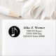 Un étiquette de adresse cool avec une image en cercle graphique d'une note musicale, personnalisée avec votre nom, vos initiales et informations supplémentaires