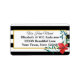 Vous pouvez modifier le texte d'affichage qui indique "Nous avons déménagé" dans le script noir. De plus, vous pouvez personnaliser votre étiquette votre nom et votre nouvelle adresse. Des rayures noires et blanches forment l'arrière - plan. Une fleur rouge est sur le côté droit.