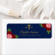 Nurse graduation with pink and red roses against a navy blue background. Gold caduceus and script typography.