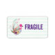 Étiquettes de adresse qui indique : FRAGILE. Avec une illustration mignonne d'aquarelle d'un oeuf se reposant à l'intérieur d'un panier en osier. Décoré des rubans, des arcs, des fleurs et de petits coeurs aussi. Un flamant rose et un lapin blanc se tiennent de chaque côté observants au-dessus de la cargaison précieuse. pâlissez - l'arrière - plan rayé vert.