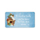 Belle étiquette de adresse de faune hivernale avec de petits oiseaux, une maison d'oiseaux enneigée et saint. Customiser les zones de texte.