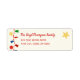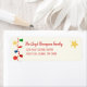 Célébrez la saison avec ce étiquette de retour de vacances festif, avec un motif fascinant de rouge profond, bleu riche, brillant or, et des ornements de Noël verts. Des cloches et des billes rouges vibrantes attirent l'oeil, tandis que d'élégants accents bleus ajoutent profondeur et charme. Les arbres de Noël verts aux guirlandes dorées apportent de la joie aux fêtes, et les étoiles dorées étincelantes ajoutent une touche de luxe. De délicates cordes de perles rouges se tissent à travers le design, créant un motif chaleureux et joyeux qui capte l'esprit de la saison.
