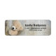 Étiquettes de adresse avec une photo de chéri d'un mignon ours en peluche, debout près d'un mur en bois rustique / toile de fond.
