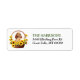 Le côté gauche de ces étiquettes d'adresse de retour présente l'image d'un adorable chien de chiot Cocker Spaniel couleur bouffon assis dans un panier en osier rempli de tournesols dorés. Votre texte personnalisé est en vert et noir à droite. Coloré et mignon !