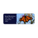 Étiquette Papillon monarque sur chardon violet bleu foncé