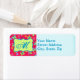 De magnifiques papillons blanches volent vertigineusement sur cette étiquette d'adresse de retour colorée personnalisée avec votre monogramme initial. Les belles couleurs de lavande, rose fushia, bleu turquoise, orange et jaune créent une belle palette de couleurs sur un arrière - plan rouge pourpre. Ajoutez votre adresse de retour ou d'autres informations dans la zone bleu turquoise à droite. Les éléments de conception d'icônes à motifs comprennent également des fleurs jaunes, turquoise, lavande et rose fuchsia et des cercles fantaisistes. Customisez pour vous-même ou pour un cadeau. Les papillons sont toujours populaires et bonne chance ainsi que tendance, contemporain et élégant avec grand charme. Entièrement personnalisable pour ajouter votre monogramme ou un nom ou un autre mot spécial. Coordonner avec d'autres produits de la même couleur dans ce magasin. Plusieurs choix de couleurs pour les couleurs arrière - plans sont également disponibles dans ce magasin.