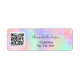 Un arrière - plan holographique branché aux couleurs unicorne et aux couleurs arc-en-ciel rose, violet, or rose, vert menthe. Décoré avec des gouttes de parties scintillant en or rose, rose et violet. Personnalisez et ajoutez votre nom, adresse et votre propre code qr à votre site web/site de médias sociaux.