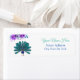 Étiquette Peacock vert et bleu | Fleurs d'aquarelle violette