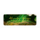 Ce design d'étiquette d'adresse de retour personnalisées super tendance comporte votre nom et adresse sur un fond abstrait vert émeraude avec des éléments de feuille d'or faux. Le texte est entièrement modifiable. Utilisez l'option Personnaliser pour apporter des modifications. Utilisez l'outil Modifier la conception pour effectuer d'autres ajustements, comme la modification de la police, de la couleur de police ou de la disposition du texte.