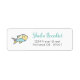 Cette étiquette d'adresse de retour baby shower chéri comporte un petit poisson mignon accompagné d'un texte turquoise et noir. Offres d'invitation et de fête correspondant disponibles.