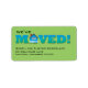 Annoncez votre récent déménagement avec cette étiquette d'adresse de retour amusante. Une illustration d'une maison représente le "O" dans "Moved" contre un arrière - plan vert agréable. Ajoutez votre nom et votre nouvelle adresse en dessous. Disponible avec des produits correspondants.