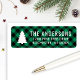 Les étiquettes d'adresse de retour de vacances comportent une silhouette de pin blanc avec un texte personnalisé moderne blanc qui peut être personnalisé. Arrière - plan émérite à motif vert et noir de buffle chèque / plaid inclus.