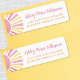 Un petit rayon de soleil Étiquette de adresse. Ce étiquette de adresse lumineux et gai est la touche finale parfaite pour envoyer des invitations d'anniversaire de baby shower ou "Premier voyage autour du soleil". Le design se caractérise par un soleil éclatant avec un centre rose doux sur le côté gauche, avec des rayons colorés dans un mélange ludique de jaune, orange, rose et rouge pour une ambiance joyeuse et ensoleillée. A droite, les détails de l'adresse sont affichés dans un mélange de polices rose et orange, ajoutant un aspect sucré et animé. Entièrement personnalisable, vous pouvez mettre à jour le texte, les polices et les couleurs en fonction du thème de votre événement. Une façon amusante et festive d'envoyer vos invitations spéciales de célébration!