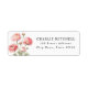Belles étiquettes d'adresse de retour avec un tableau de fleurs de ranunculus roses, et votre adresse de retour dans une élégante police serif positionnée à droite.