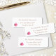 A simple perfect pink rose accents this return address label wth stylized text and gold tone color font. Ready to edit with your own name and address. Perfect for wedding or save the date invitations, thank you cards or other romatic occasion.