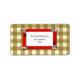 Un étiquette avec l'illustration de quatre crayons rouges formant un rectangle au centre. L'Arrière - plan est en vichy. Personnalisez avec votre nom.