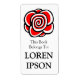 Un étiquette à assiette avec un motif rose dessiné à la main, entrez votre nom pour customiser. Peut également être customisé plus loin.