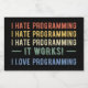 Design amusant, parfait pour toute personne qui est un programmeur, un spécialiste de la technologie, un codeur, un ingénieur informatique, un étudiant en informatique, ou quelqu'un qui aime coder! Je Déteste La Programmation. Ça marche ! I Love Programming'drôle de citation pour les programmeurs, les passionnés de technologie, les codeurs et les développeurs. Aimez-vous travailler dans le domaine de la technologie et faire partie de l'équipe technique? Accentuez votre style avec cet art cool ! Excellent cadeau pour un étudiant de l'informatique, un employé spécialiste de la technologie, un collègue de la technologie ou un professeur d'ingénierie informatique.