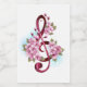 Pink treble clef with delicate, detailed pink Japanese cherry blossoms against white background painted over with light blue paint Blooming pink sakura.