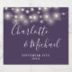 Design mariage violet élégant avec de jolies lampes à cordes, des noms de style signature et votre date de mariage spécial. Conçu par Thisisnotme©