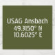 Coordonnées de la carte de latitude et longitude pour USAG Ansbach / Katterbach Kaserne en Allemagne police blanche de style Tablier sur arrière - plan vert de l'armée.