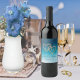 Étiquette Pour Bouteilles De Vin Aquarelle bleue Ombre Monogrammé
