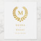 Étiquette Pour Bouteilles De Vin Élégant or Laurel Wreath Monogramme blanc