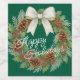 Ce étiquette de bouteille de vin de vacances magnifiquement conçu présente d'élégantes aquarelles d'une couronne ornée d'un arc blanc, de pinecones, de feuilles verts, de baies rouges et d'aiguilles de pin. Son design élégant mais rustique saisit l'essence de la période des fêtes de décembre et séduit ceux qui apprécient les illustrations artistiques. Le étiquette propose des options de personnalisation, vous permettant de le personnaliser avec votre salutation saisonnière, ce qui en fait un choix réfléchi pour répandre la joie des vacances.