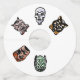 Les 5 personnages d'Halloween classiques sur une étiquette en papier de fête d'Halloween en option sombre. Cette étiquette en verre d'Halloween à deux côtés vous donne plus de choix de style. Serez-vous la sorcière, le diable, le pirate, le chat ou le crâne à votre fête d'Halloween ?