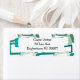 Ces étiquettes d'adresses de retour ont un design moderne du milieu du siècle de rectangles biaisés avec des trous blancs dans les tons bleu-vert.