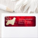 Cette étiquette d'adresse de retour distinctive présente une silhouette or American Cocker Spaniel image devant un spray de flocons de neige dorés ornés. L'image est placée sur un arrière - plan rouge profond en dégradé qui semble presque luisant. Votre texte personnalisé est en or pâle correspondant à droite de l'image. Belle !