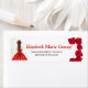 Celebrate your sweet 15 in style with these elegant custom return address labels. Featuring a stunning illustration of a girl in a red ball gown surrounded by red roses and gold glitter confetti, these labels are perfect for your Quinceañera invitations.