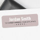 Retourner les étiquettes d'adresse avec votre nom dans une police sans serif blanche en gras et l'adresse ci-dessous en gris foncé sur un arrière - plan taupe rose.