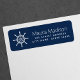 Élégantes étiquettes d'adresse de retour comportant une roue blanche sur un champ bleu foncé arrière - plan et modèle pour votre nom et adresse.