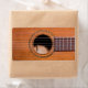 Détaillé guitar photo of strings and sound hole on a worn acoustic guitar.