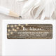 L'étiquette d'adresse de retour rustique est ornée d'imprimés en bois foncé, de lampes à cordes et d'une superposition de typographie blanche.